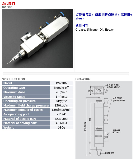 产品名称: 高压撞针点胶阀